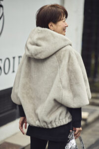 ミンク調のたっぷりフードで