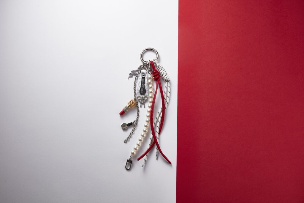 パンプスは、いつまでも背筋をスッと伸ばし、溌剌と歩く颯爽とした女性を象徴するモチーフ。また、赤リップも、大人の女性らしさを引き出してくれるアイテムです。キュートなチャーム達と共に、その生成過程から「健康」や「長寿」のパワーを持つと言われる、パールもONしました。エネルギーを高める情熱的な「赤」と、魔除けの効果を持つ「シルバー」、二つの最強カラーパワーでいつまでも美しく!