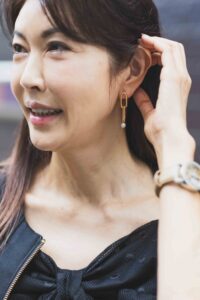 娘と出かけた原宿で見つけたプチプラピアスも、カジュアルスタイルに