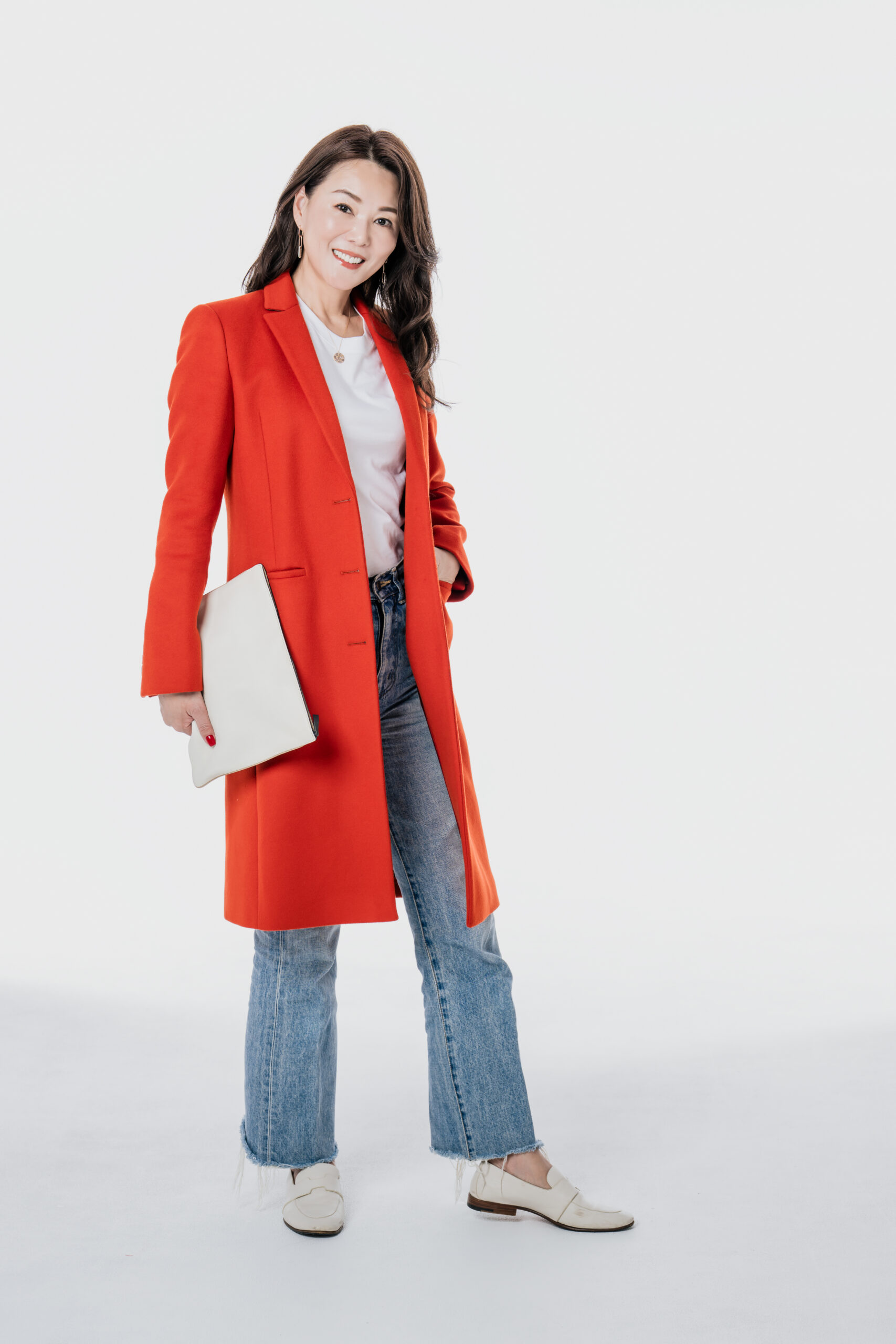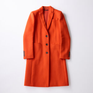 朱赤は昔から大好きな色。でも服として取り入れるのは目立ってしまうので勇気が出ませんでした。10年前、たまたま百貨店で出会ったこのチェスターコートに一目惚れ。羽織るだけならタダだと思って羽織ってみたら、あまりの美しさに感動してしまって……。でもさすがにインパクトある色なので躊躇していると、その場にいらしたスタッフの皆さんやお客様から大絶賛の嵐で(笑)、思い切って迎え入れることにしたんです。形はキレイだし、着心地は抜群だし、なかなか出会うことのないこの素敵な朱赤は私にとって唯一無二のコート。今まではあえてデニムでカジュアルダウンして着ていたけど、50代の今はタイトなワンピースやロングブーツに合わせて女っぽく着たりと、コーデの幅も広がります。